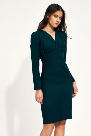Fenomenální šaty v krásných barvách, vyrobené z látky, která fantasticky splývá s pohybem těla. Přiléhavý střih, midi délka. Vrchní část šatů má špičatý výstřih se smyslným střihem pod prsy a dlouhé rukávy s řasením na ramenou. Šaty zvýrazní vaši postavu. Skvěle se hodí na různé večírky nebo svatby...