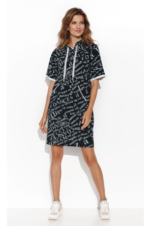 Dámské sportovní šaty se 3/4 rukávy a kapsičkami. Model je ušitý z pružného materiálu s lehce semišovou strukturou. Tyto šaty značky Numoco jsou polským výrobkem a jsou k dostání s barevným panteřím vzorem...